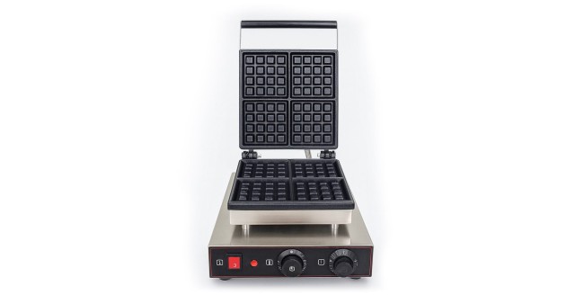 Для приготовления бельгийских вафель; жарочная поверхность из чугуна; 220 В; 1,6 кВт; 282 × 380 × 230 мм; 5,6 кг.