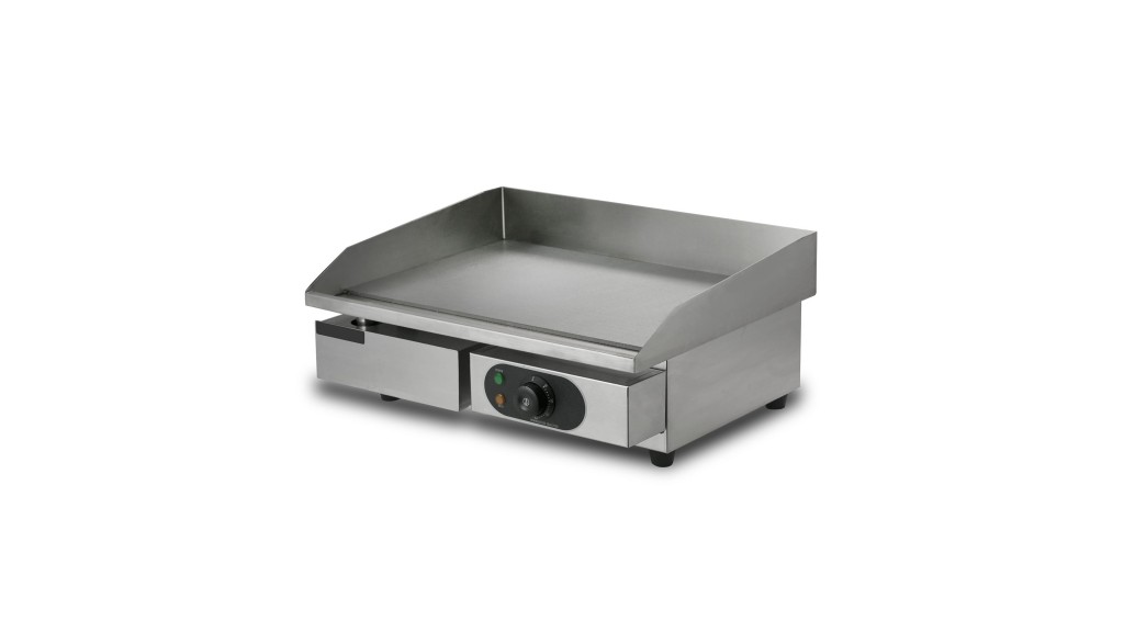 Гладкая рабочая поверхность размером 548 × 350 мм; температурный режим: 50…300 °С. 220 В; 3 кВт; 550 × 430 × 250 мм; 17,9 кг.