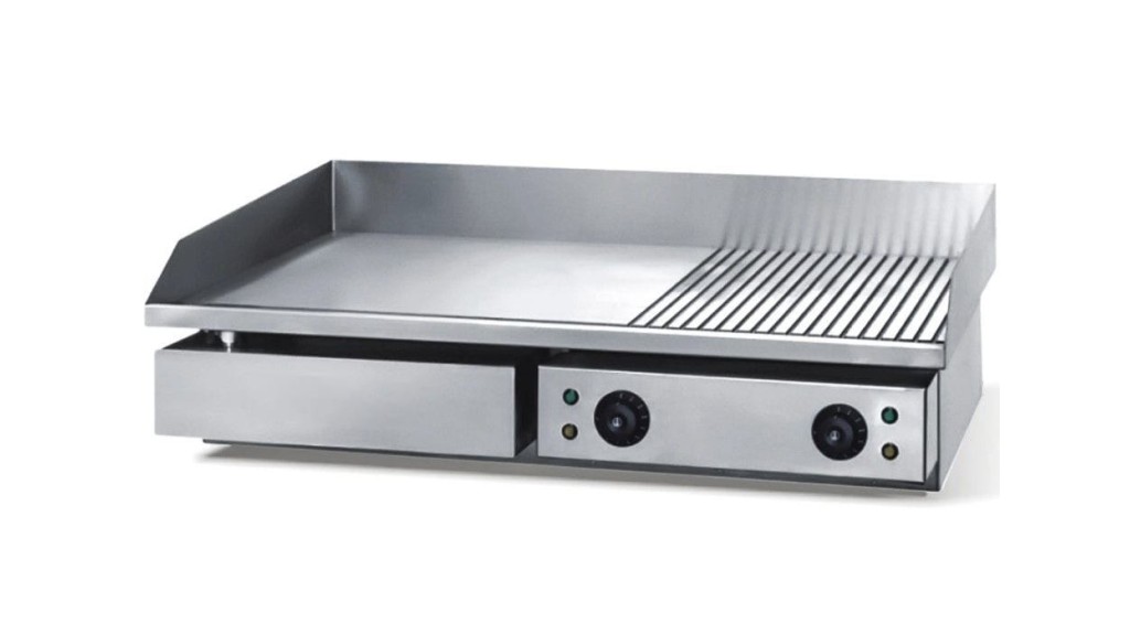 Комбинированная рабочая поверхность: 2/3 гладкая, 1/3 ребристая; температурный режим: 50…300 °С; 220 В; 4,4 кВт; 730 × 470 × 250 мм; 26,0 кг.
