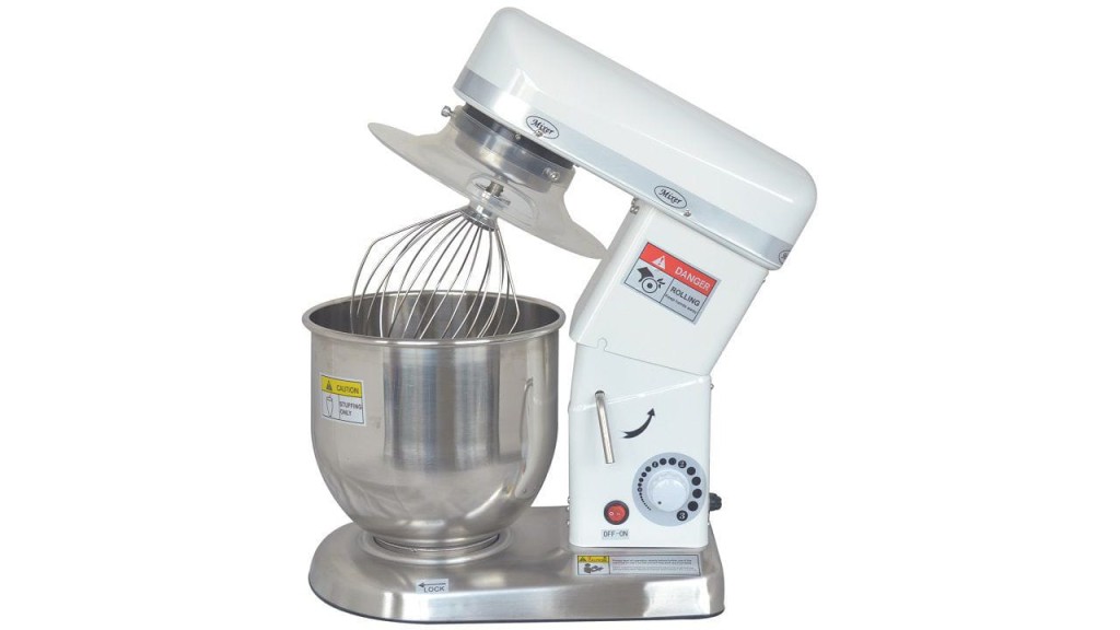 Cъёмная дежа ёмкостью 7 л из нержавеющей стали; три насадки; плавная регулировка скорости от 0 до 1000 об/мин.; 220 В; 0,5 кВт; 380 × 240 × 405 мм; 13,3 кг.
